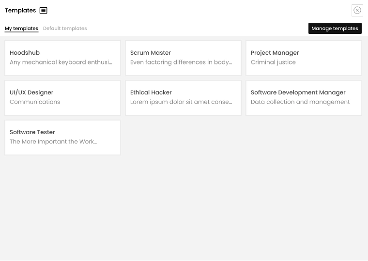 a. From the Saved list, click a template card. Its content will load in the right pane.