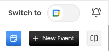 Use the switch toggle in the upper‑right corner to switch between Google and Outlook calendars.