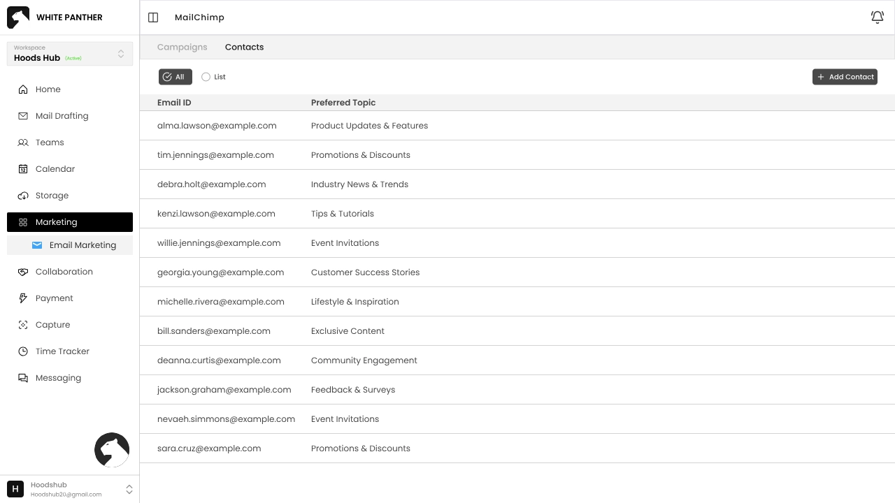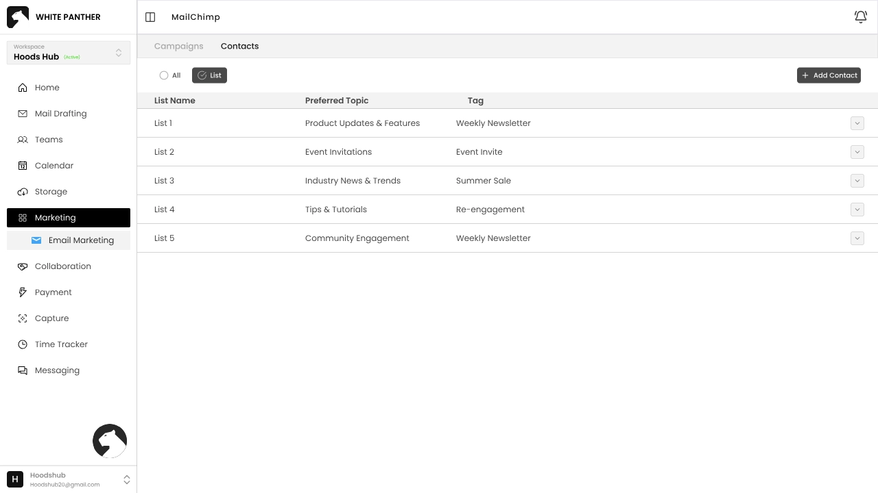 White Panther’s Email marketing module help you send professional campaigns and manage contacts.