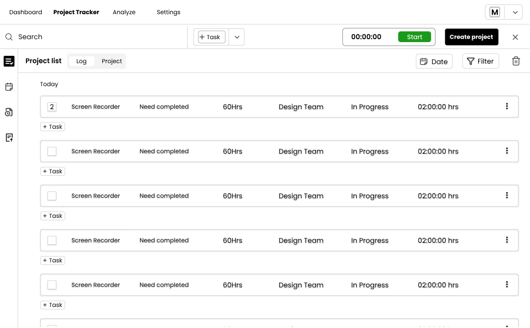 The Project Tracker view lets you organise tasks under projects and start timers for each.![]()