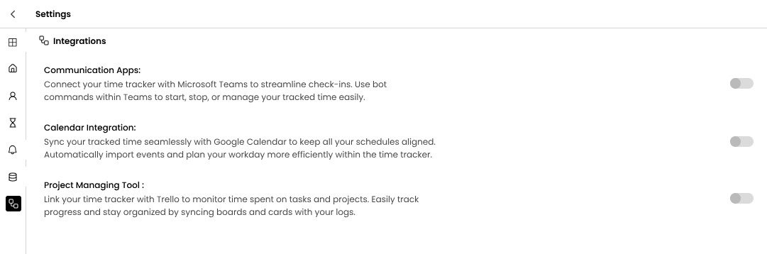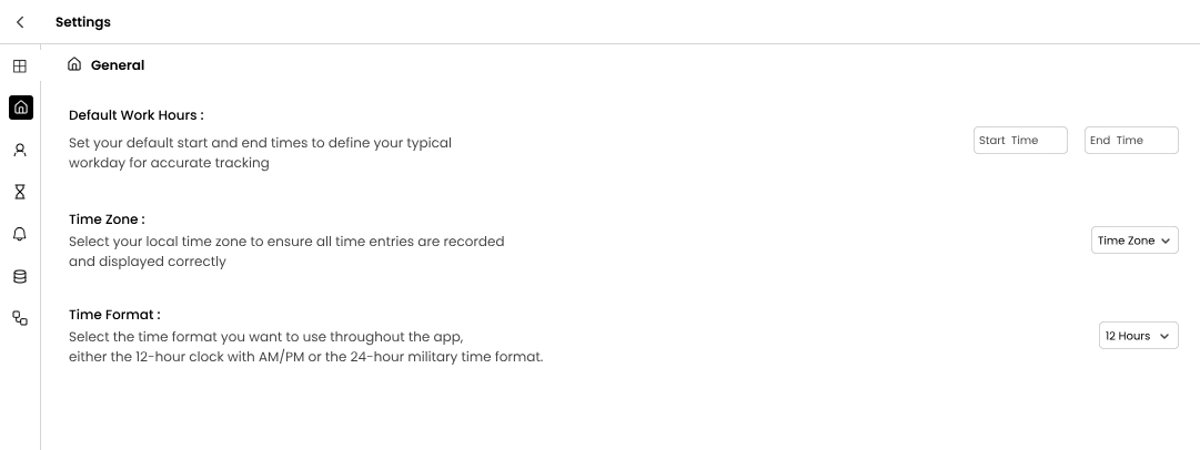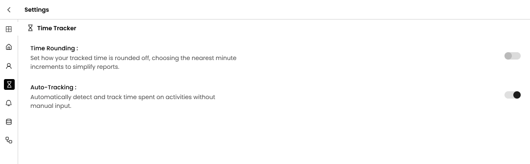 Customise how your time tracker behaves from the Settings tab.